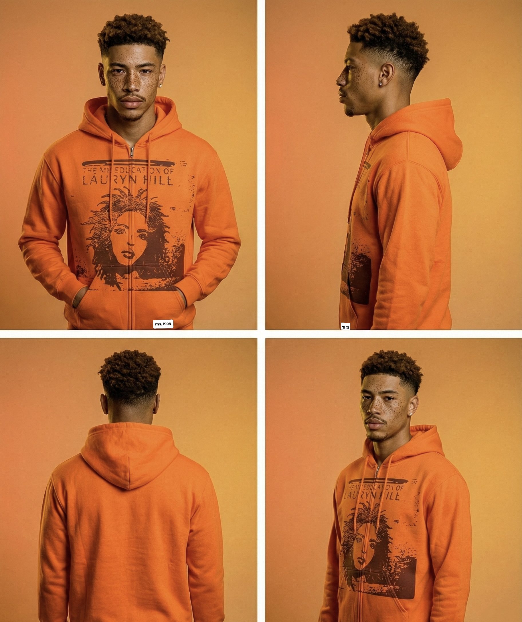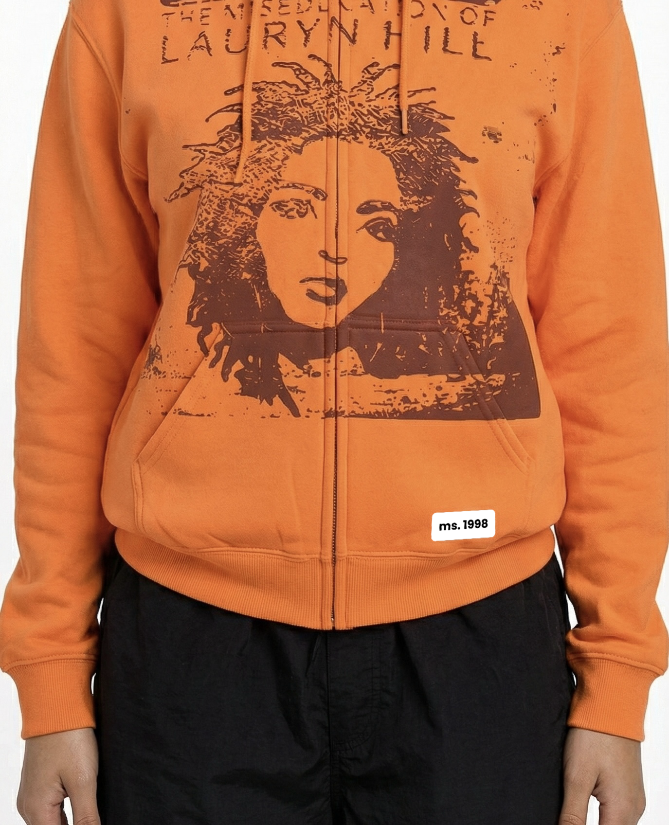 This orange hoodie represents the core drop of the Lauryn Hill Season.